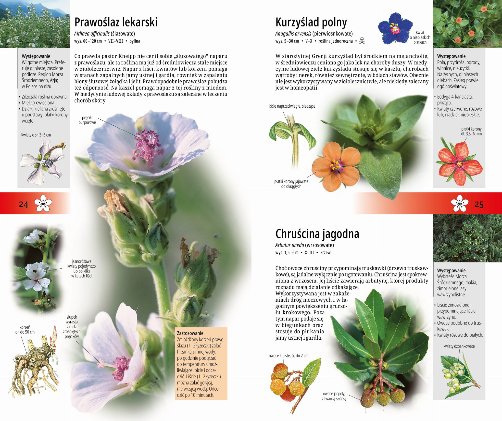 Przewodnik w poręcznym formacie przedstawia ponad 350 roślin leczniczych. Książka jest bogato ilustrowana zdjęciami oraz rysunkami charakterystycznych cech botanicznych, dzięki czemu ułatwia rozpoznanie gatunków, zarówno w naturze, jak i w uprawach oraz w kolekcjach ogrodów botanicznych. Pokazuje typowe siedliska, w których rosną zaprezentowane rośliny. Przewodnik zawiera krótkie, zwięzłe opisy, a także informacje o zastosowaniu przedstawionych roślin dawniej i dziś oraz różne ciekawostki na ich temat.